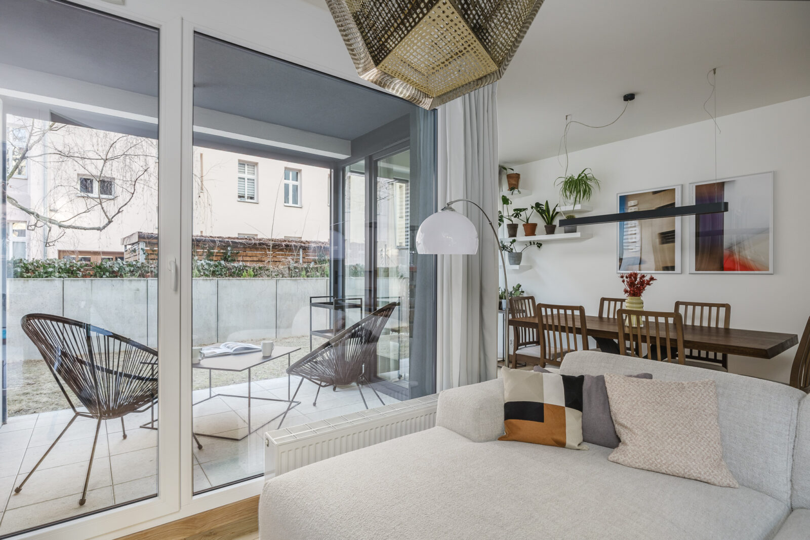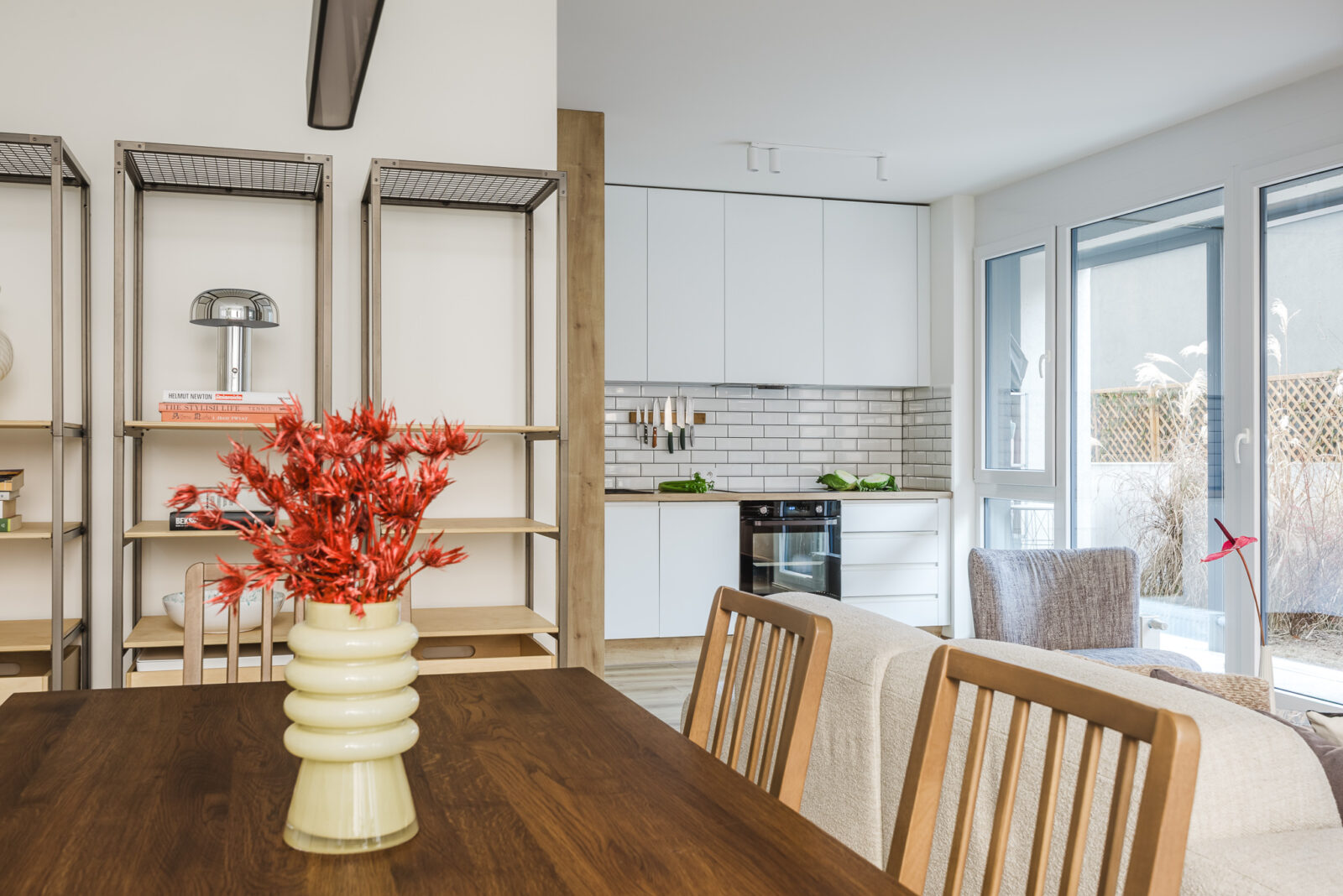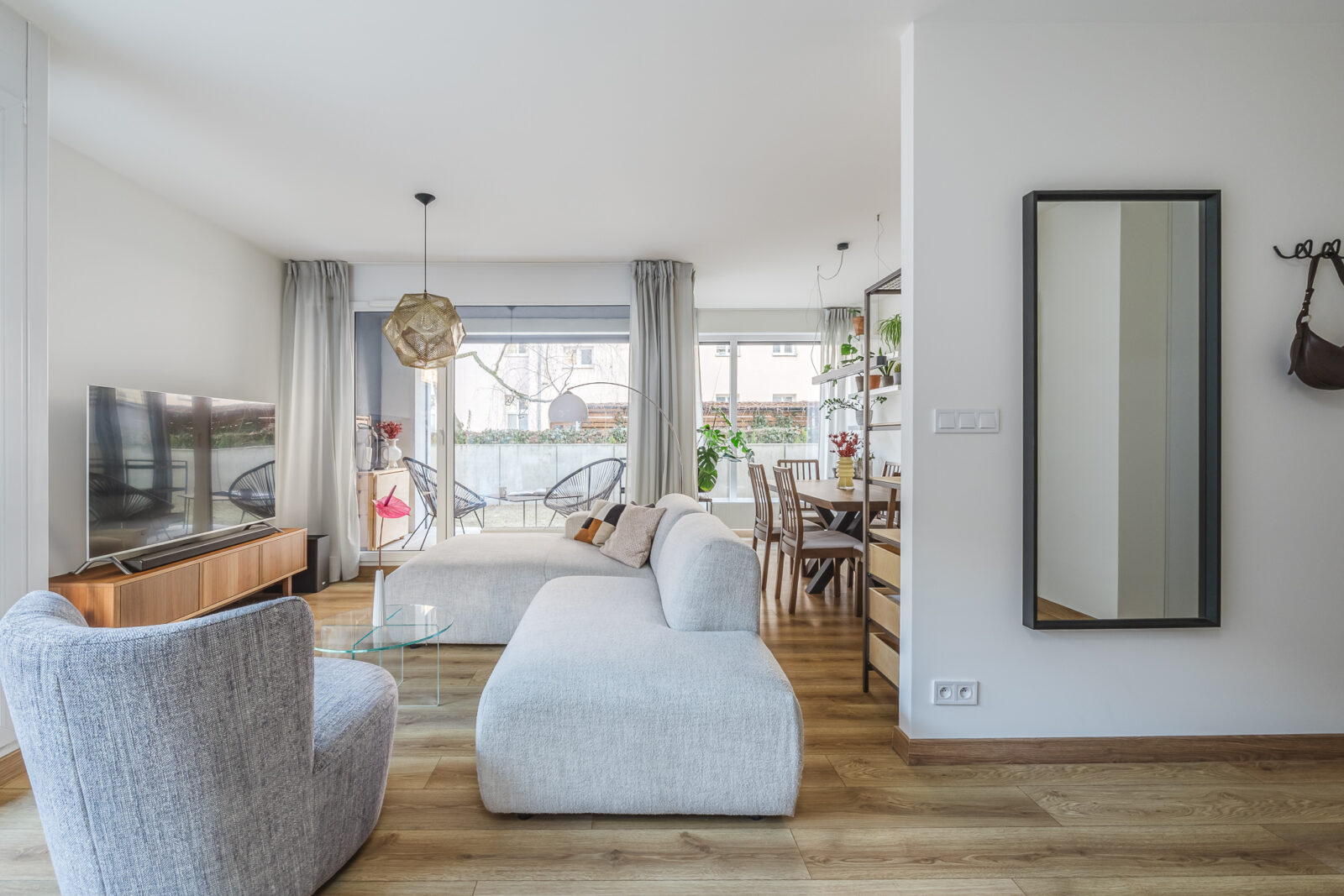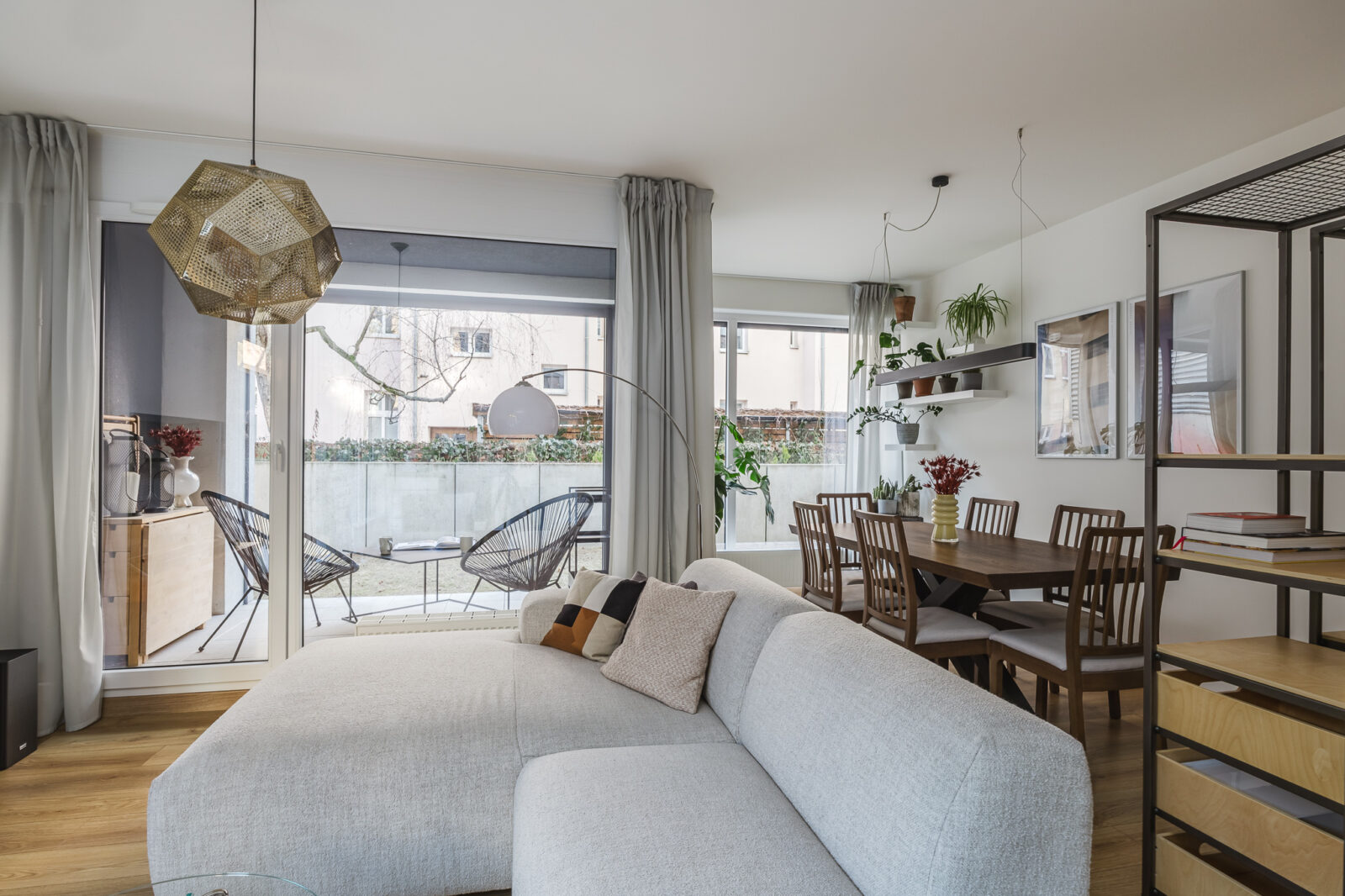 To mieszkanie dla osób, które chcą mieszkać wygodnie – z ogrodem, przestrzenią i gotowym wnętrzem, bez kompromisów.