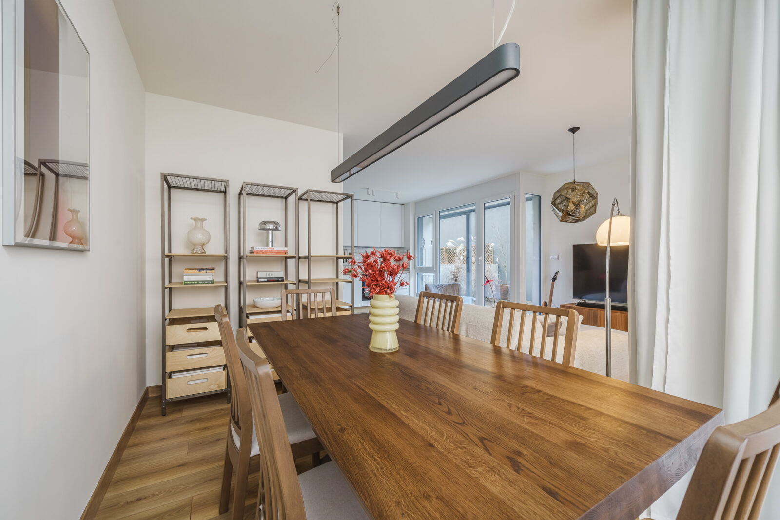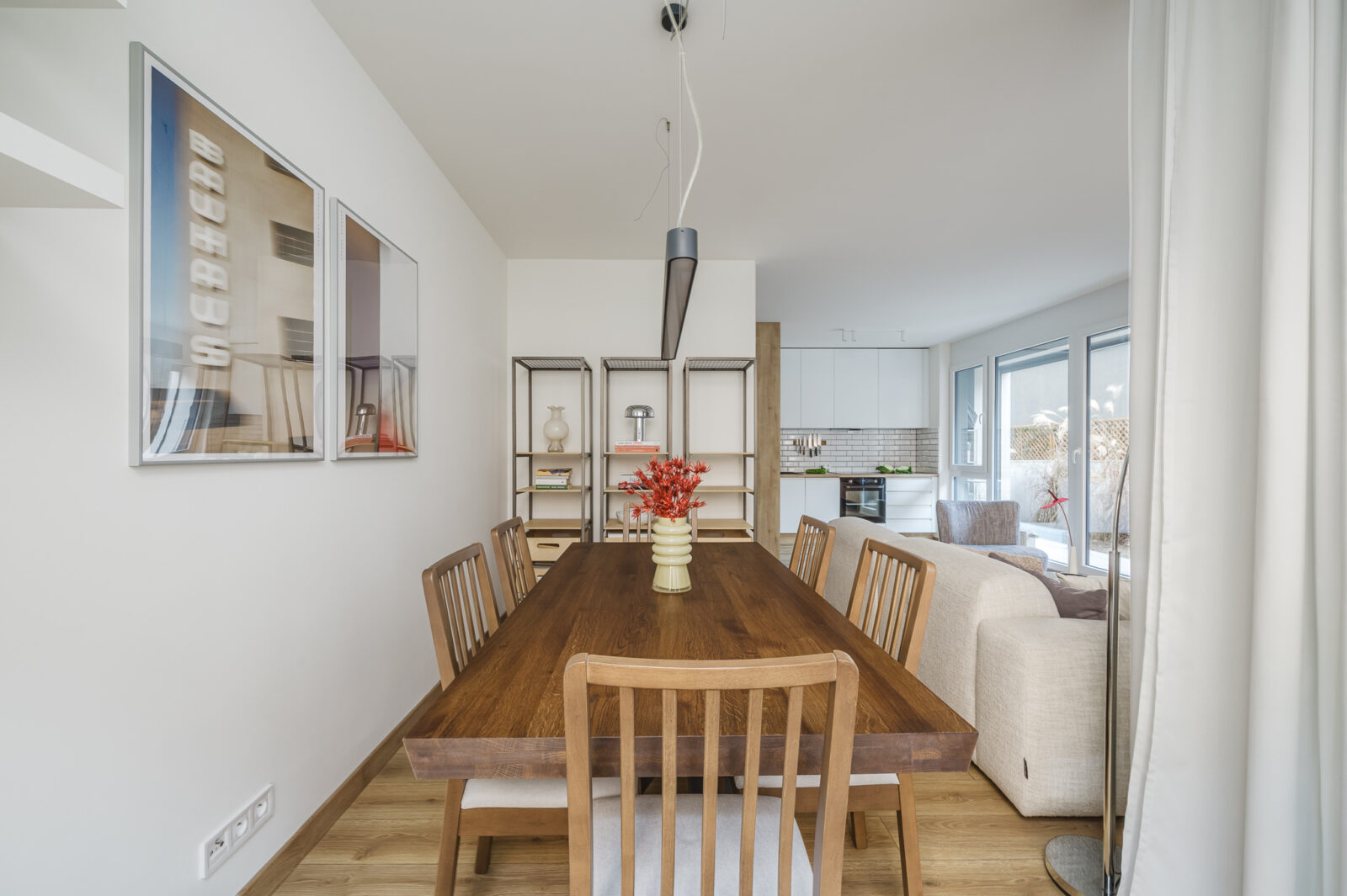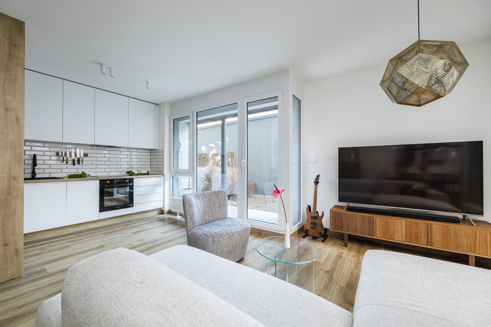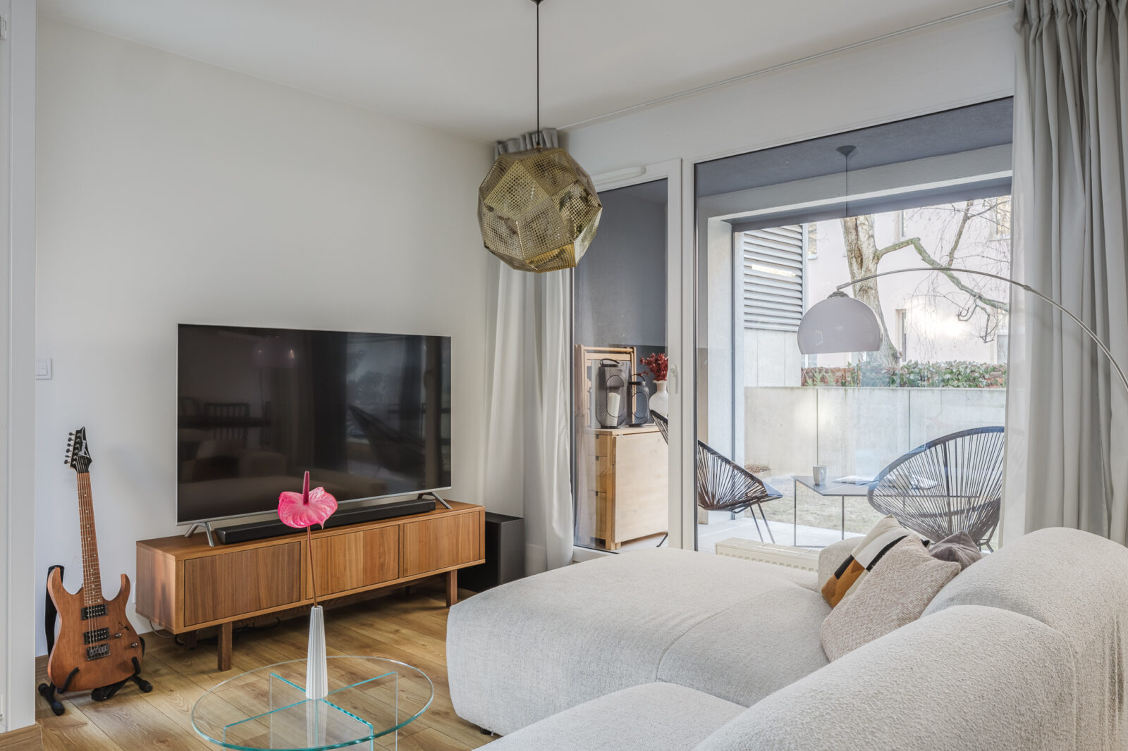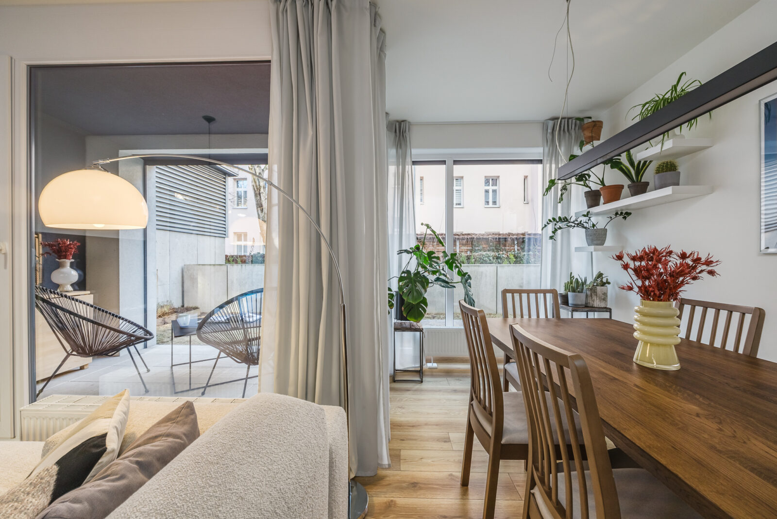 To mieszkanie dla osób, które chcą mieszkać wygodnie – z ogrodem, przestrzenią i gotowym wnętrzem, bez kompromisów.