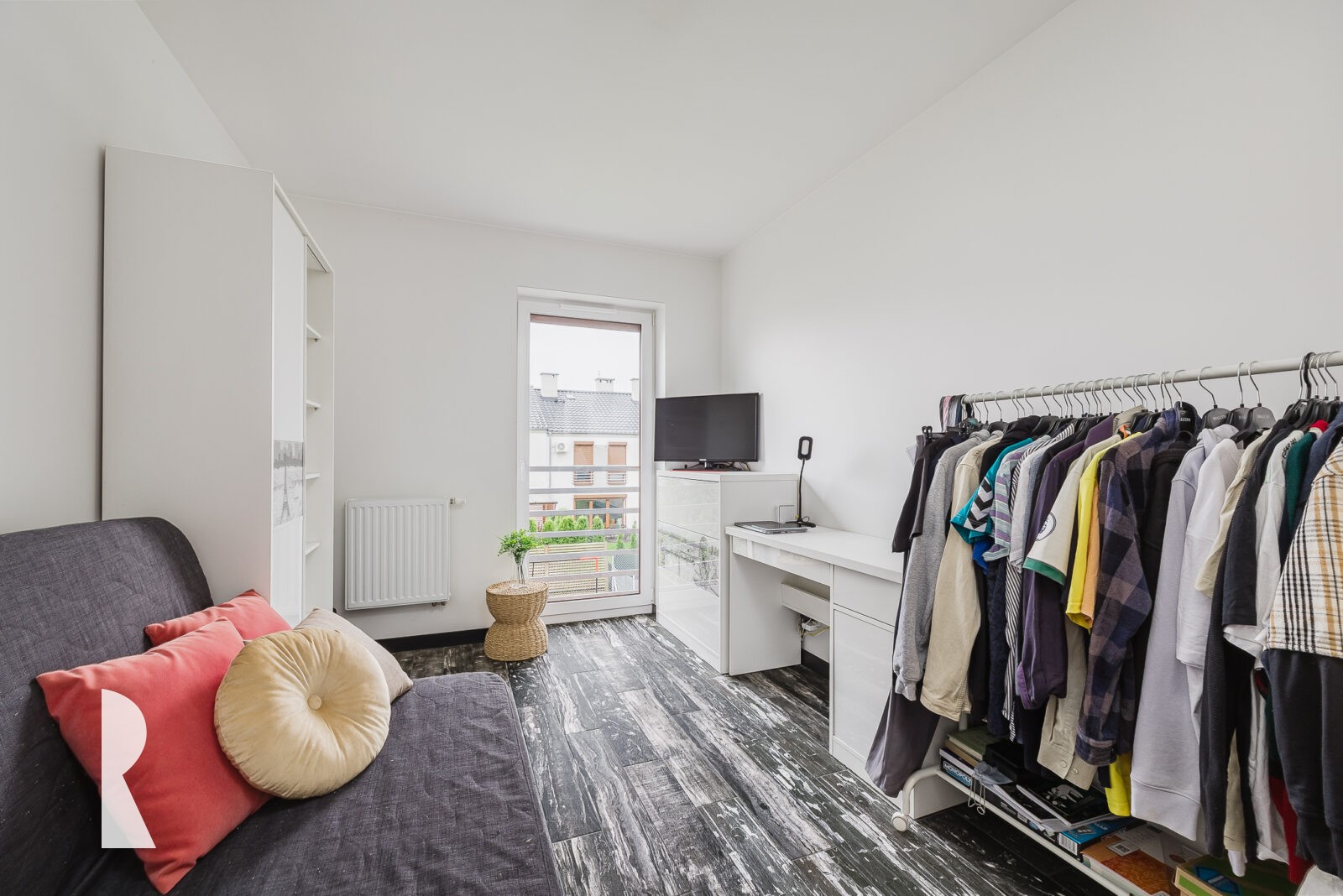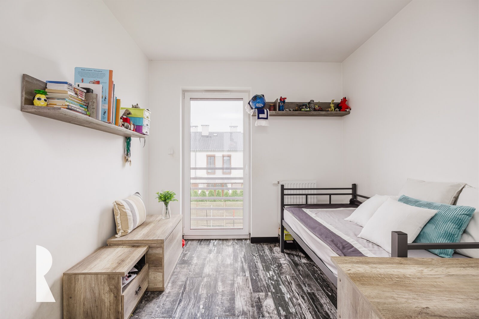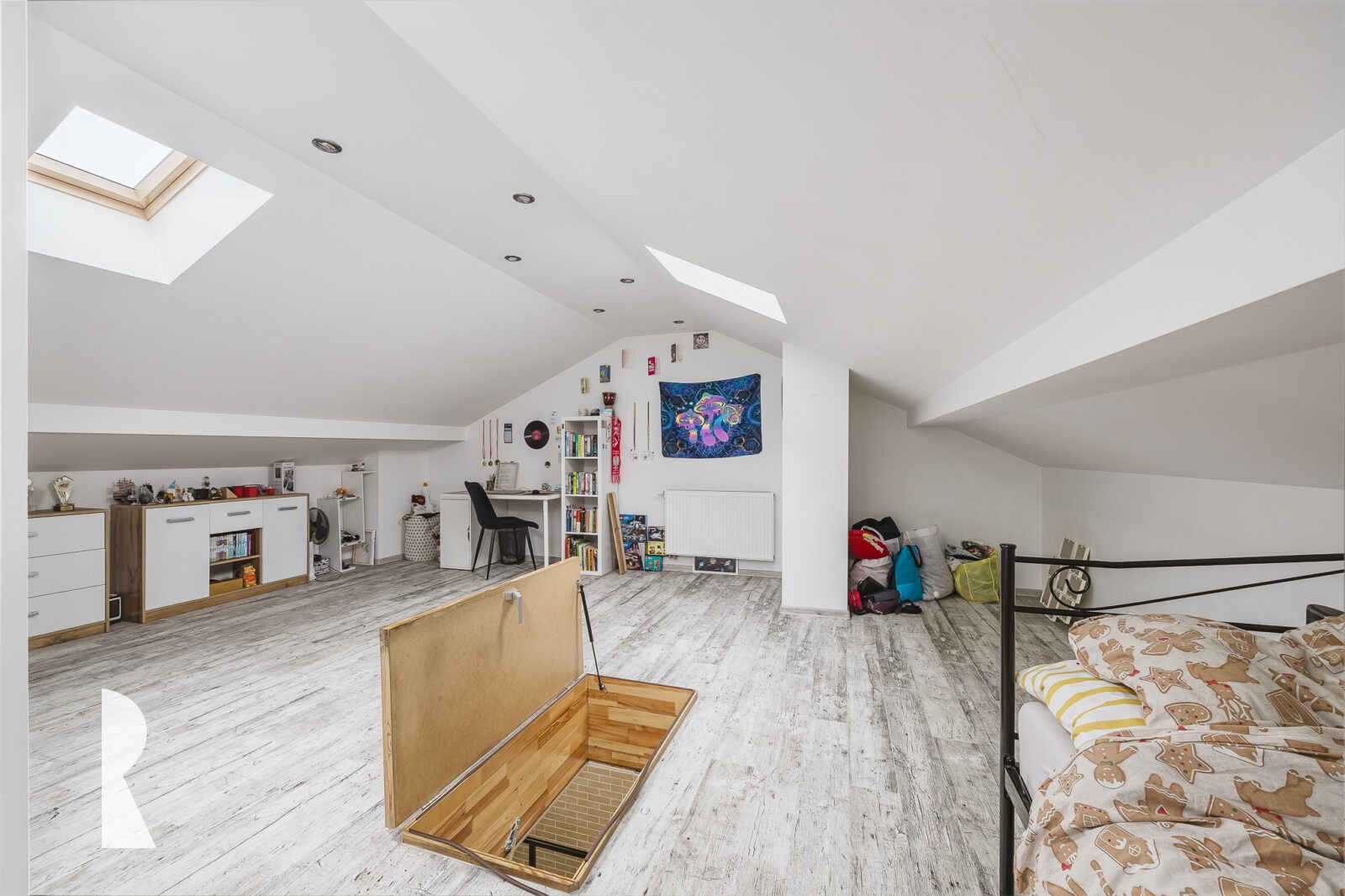 Bardzo interesujące jest tu zagospodarowanie przez obecnych właścicieli poddasza na cele mieszkalne. Jest tu pięknie urządzony pokój dla nastolatki, doświetlony oknami połaciowymi.