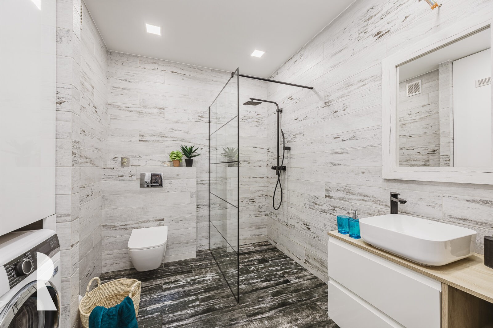 Piętro domu składa się z 3 sypialni, gabinetu do pracy, garderoby oraz dużej łazienki z prysznicem, wc, umywalką i miejscem na pralkę i suszarkę.