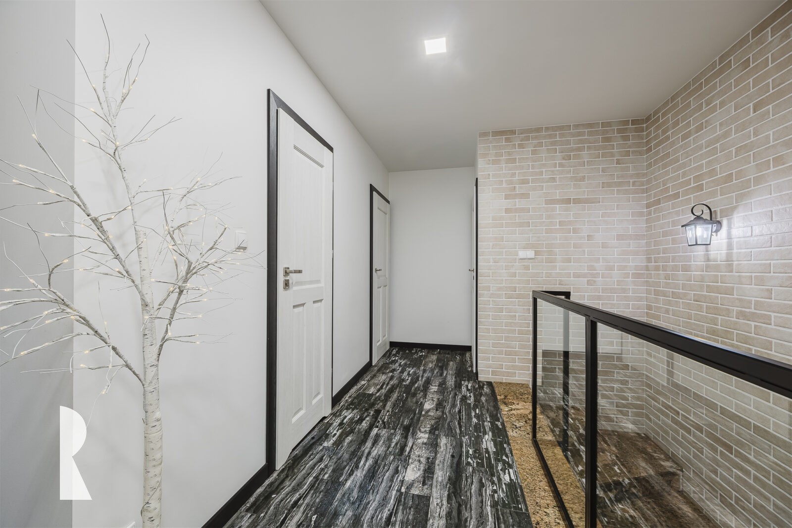 Schody wyłożone są wysokiej klasy kamieniem, co nadaje tej części domu szlachetny charakter.