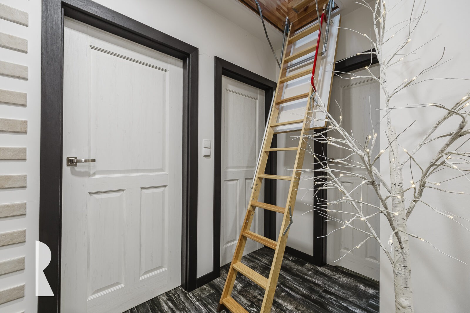 Na parterze mieści się też duża szafa wnękowa na wierzchnie okrycia i buty oraz wc z umywalką.