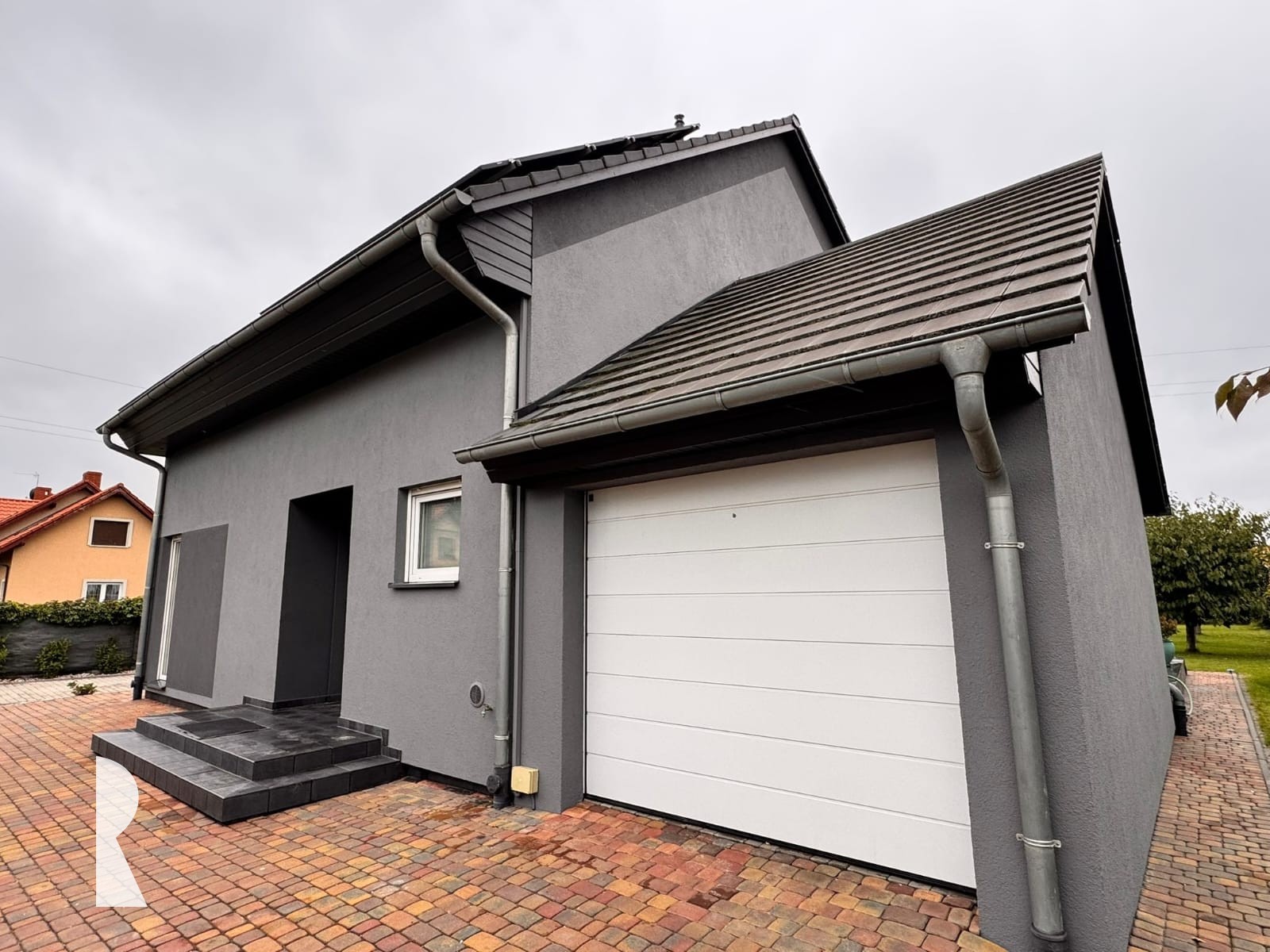 Garaż z bramą otwieraną na pilota mieści 1 auto i stanowisko warsztatowe, a dodatkowe drugie miejsce do parkowania dostępne jest przed domem na podjeździe.