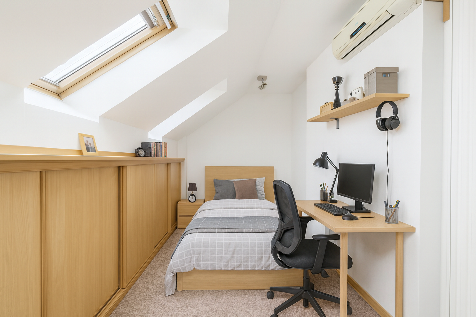 Idealna propozycja dla rodziny, pary lub osób pracujących zdalnie – poddasze świetnie sprawdzi się jako biuro.