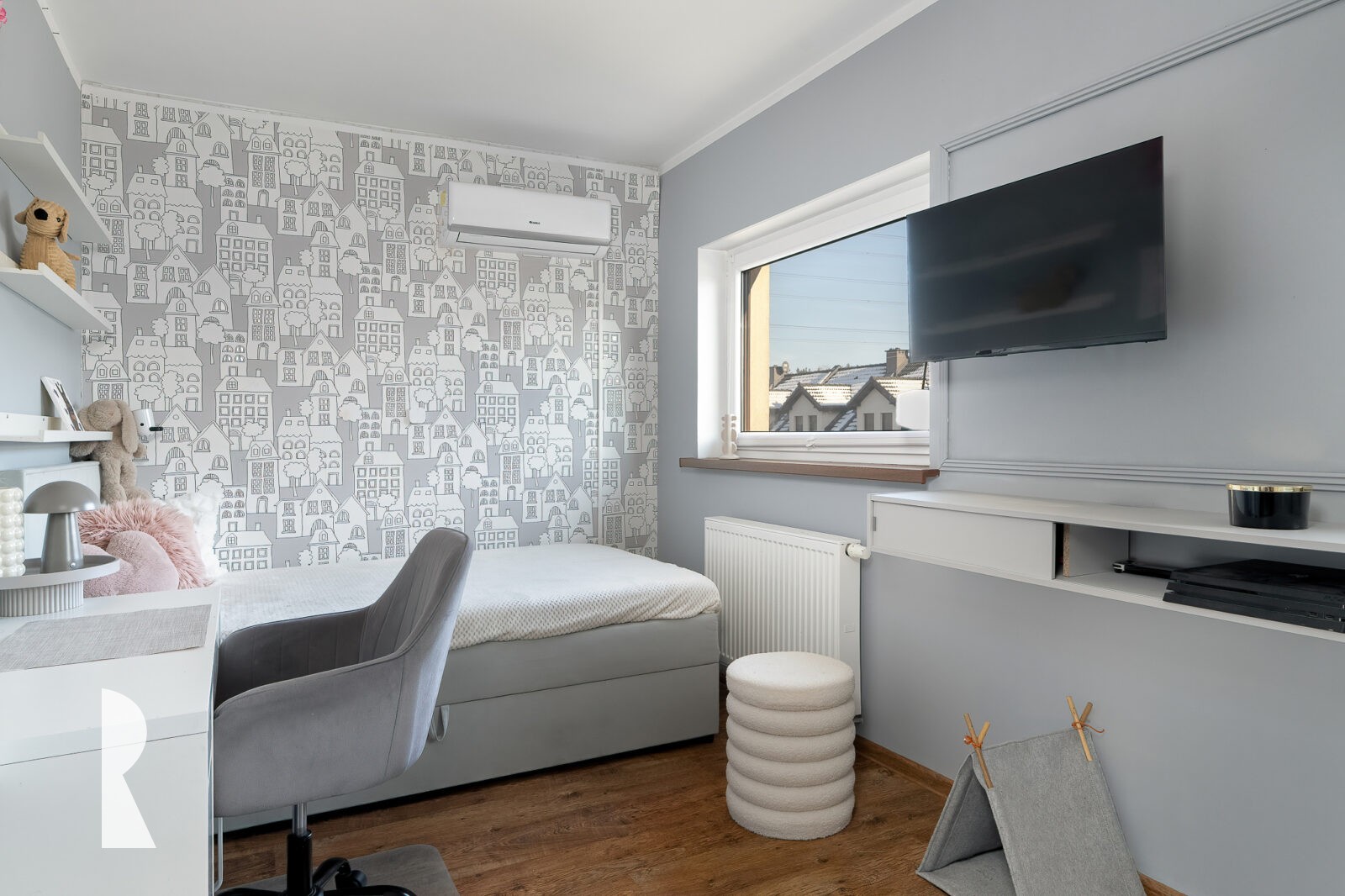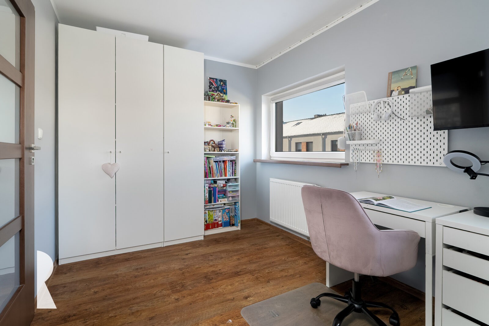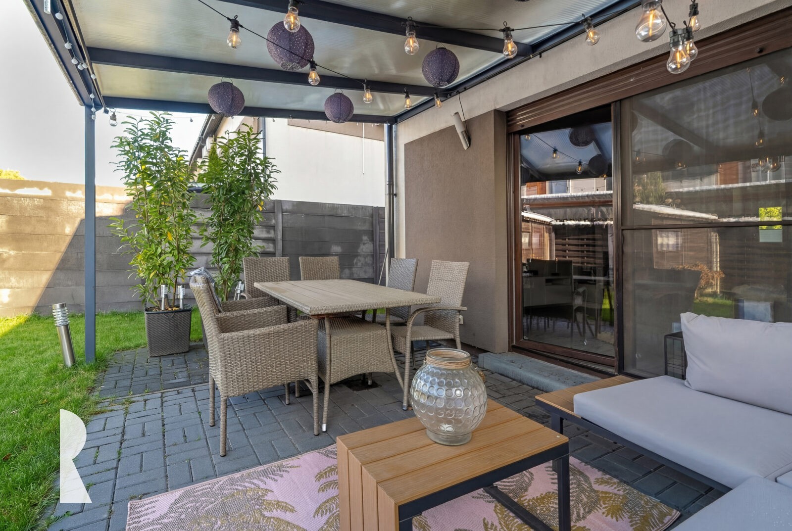 Do nieruchomości przynależy zadbany ogród z tarasem, wyposażonym w zadaszoną aluminiową pergolę z możliwością rozbudowy, oraz domek narzędziowy.
