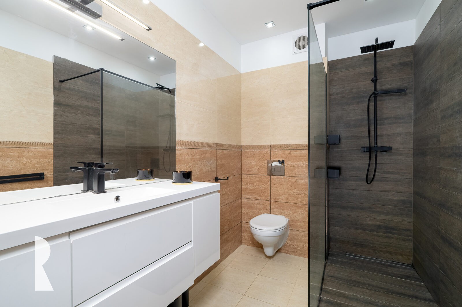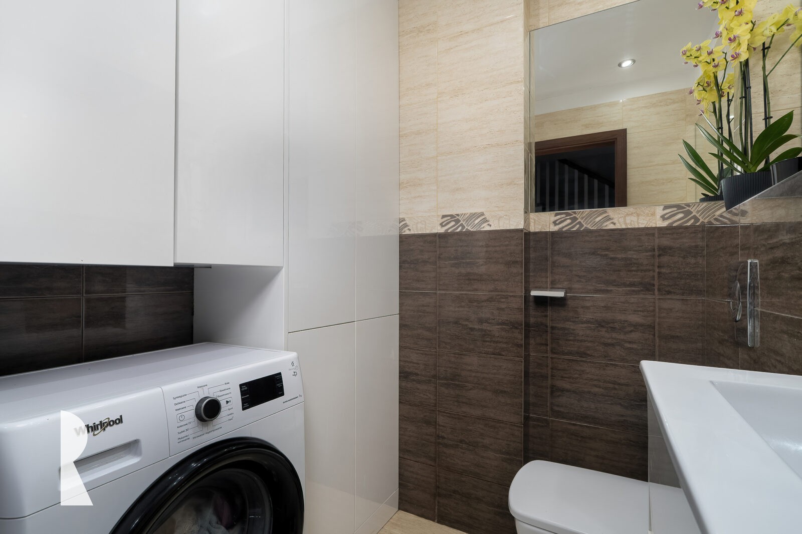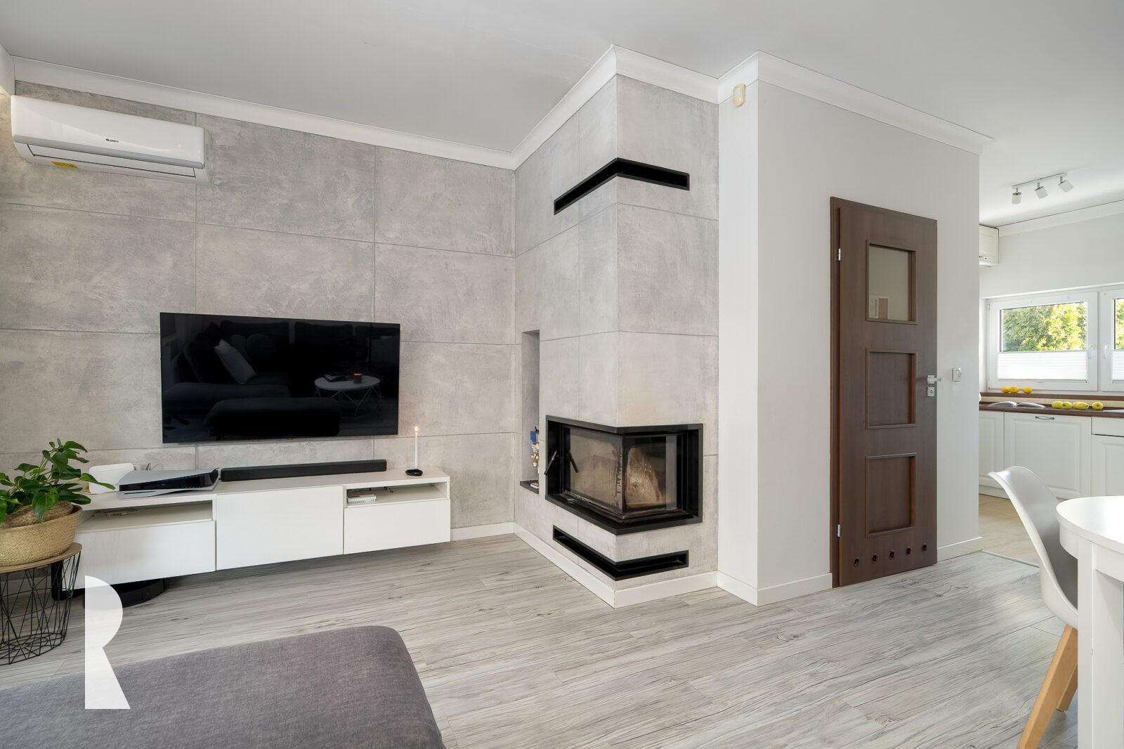 Wnętrze domu zostało starannie przemyślane i wyposażone w nowoczesne rozwiązania wpływające na komfort i oszczędność: