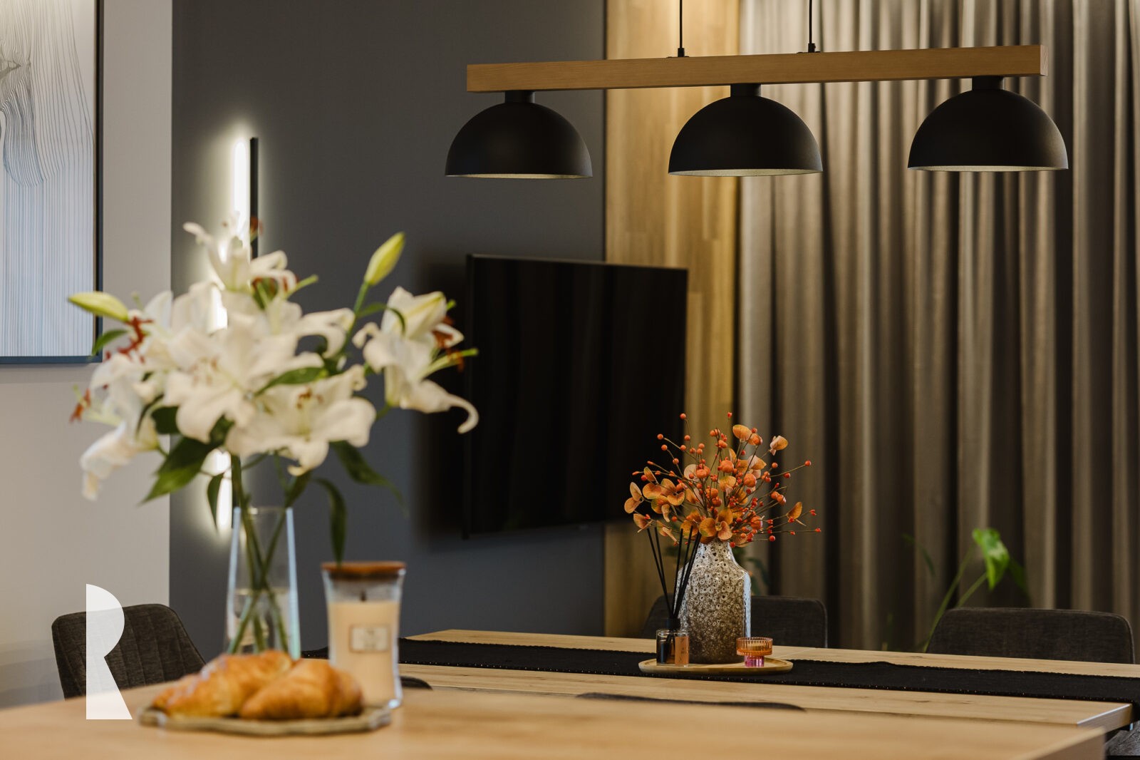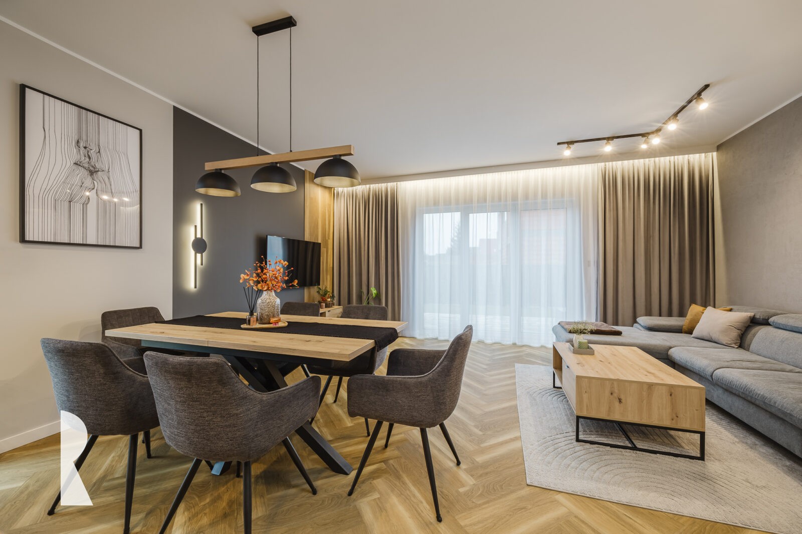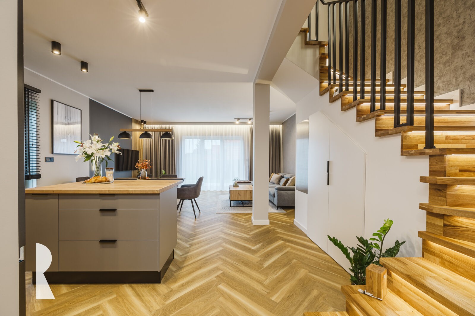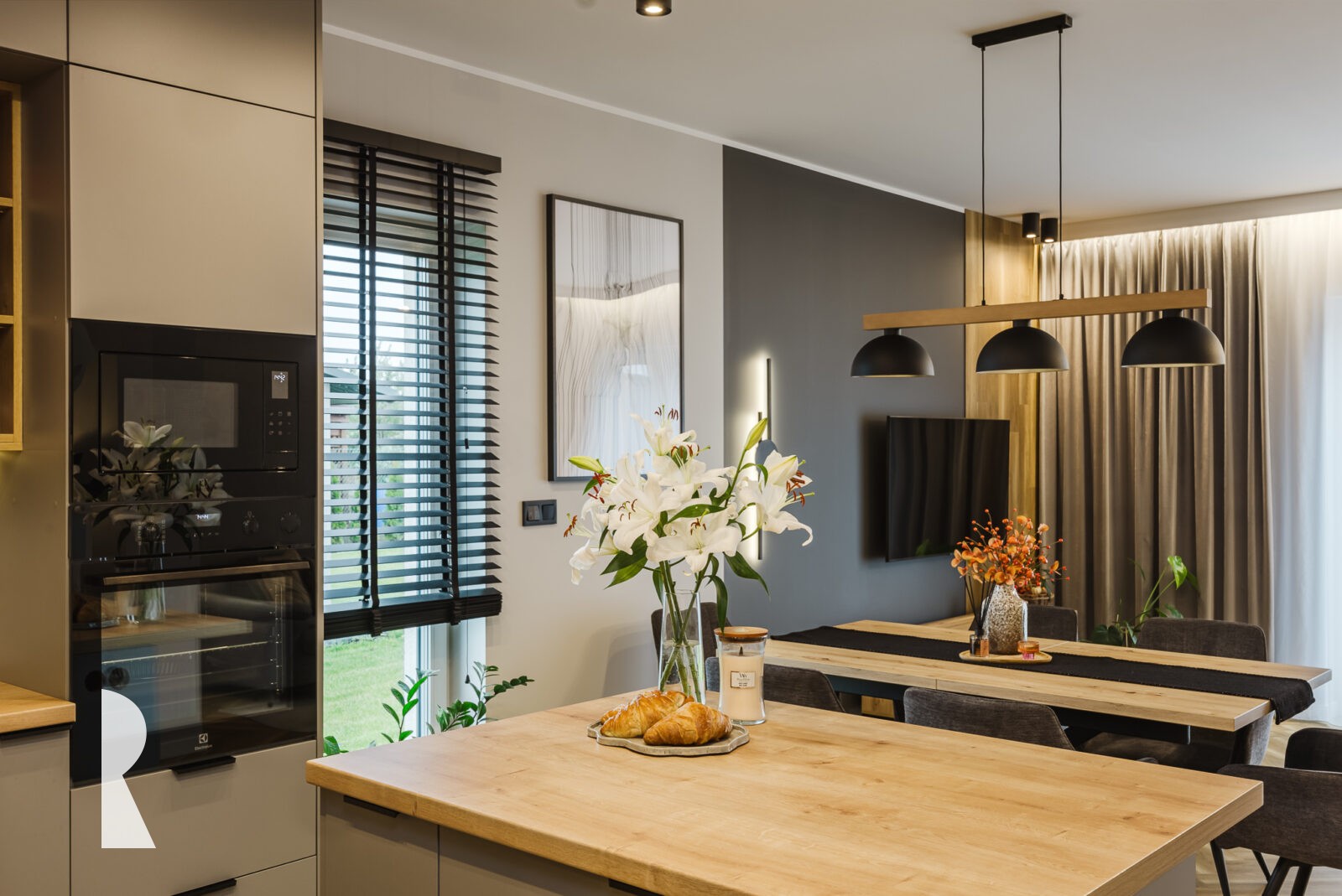 Nowoczesne wnętrza w naturalnych barwach, gotowe do wprowadzenia, zapewniają poczucie przestrzeni i przytulności.