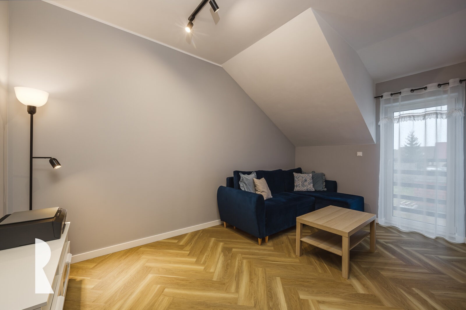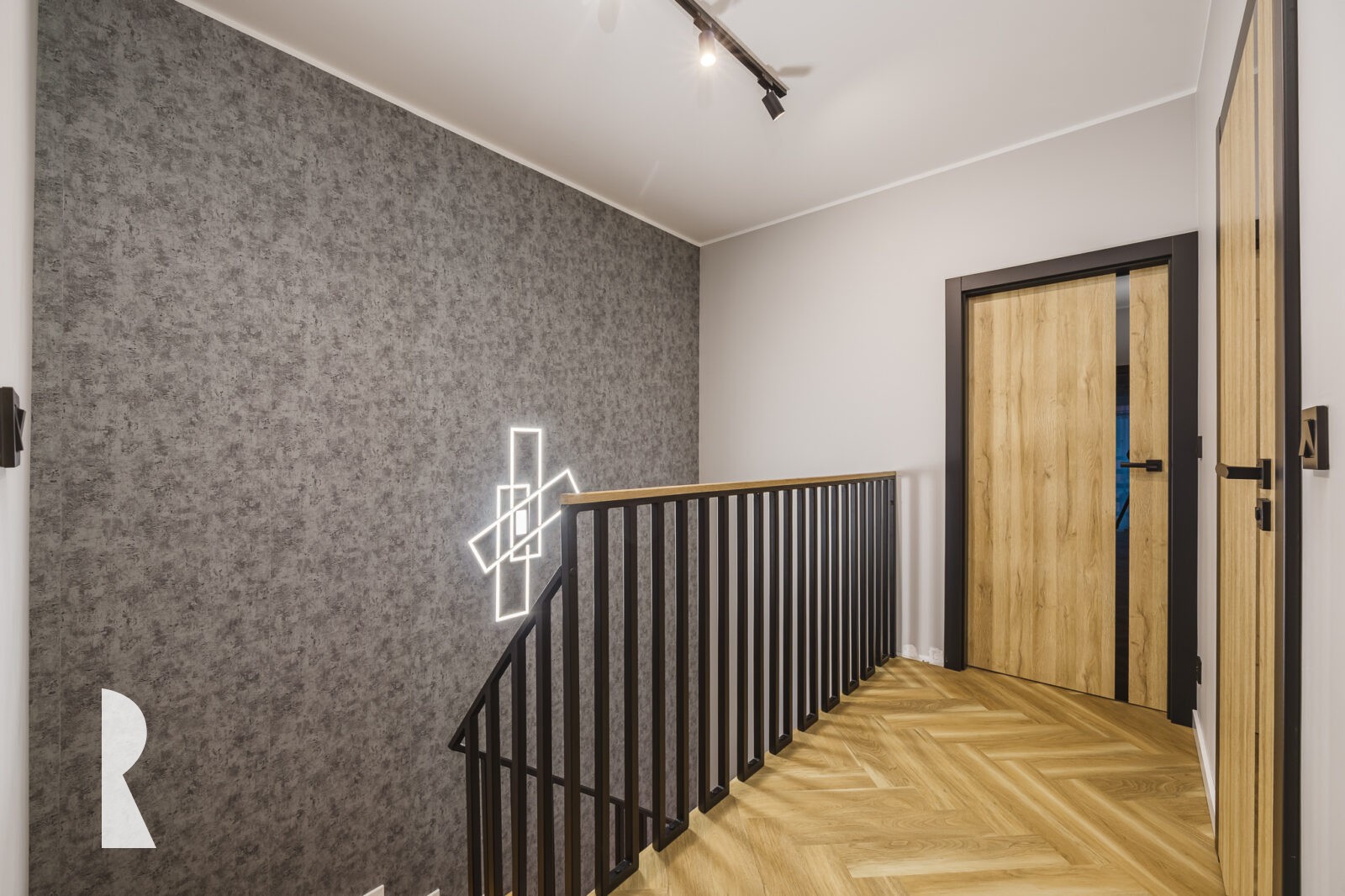 Dom o powierzchni 110,39 m² położony jest na działce 480 m² i został wykończony w maju 2024 roku. Wyróżnia się wysokim standardem wykończenia oraz licznymi udogodnieniami, które podnoszą komfort życia: