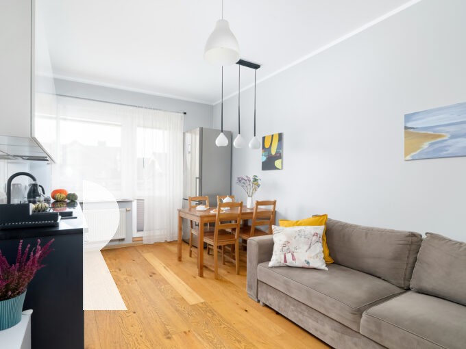 Mieszkanie jest częściowo umeblowane, urządzone w klasycznym stylu. Białe ściany, drewniane podłogi i białe meble są bardzo dobrą bazą i nadają wnętrzu przytulnego charakteru. Mieszkanie jest bardzo ciepłe, jasne i przestronne. Dostęp naturalnego światła do mieszkania przez większość dnia tworzy przyjemną atmosferę. W kuchni sprzęt AGD: piekarnik, kuchenka gazowa, piekarnik, zmywarka, lodówka z zamrażarką, jest także stół z krzesłami. Pokoje wyposażone są w pojemne szafy w zabudowie. Na korytarzu znajdziemy dodatkowe szafki i duże lustro. Łazienka z prysznicem oraz z pralką.